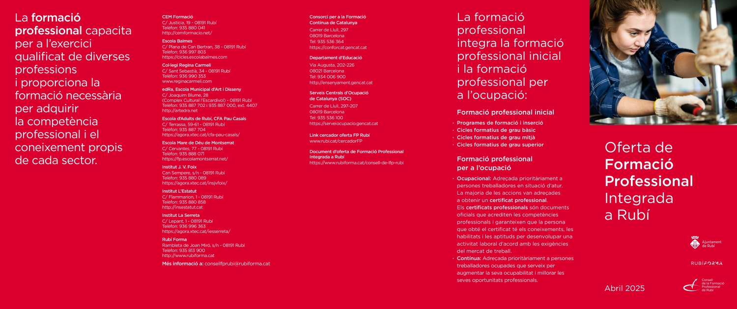 Oferta de Formació Professional Integrada Rubí Institut La Serrreta22/04/25 Us compartim l’oferta de Formació Professional Integrada a Rubí. Podeu consultar-la aquí o bé consultar el PDF.