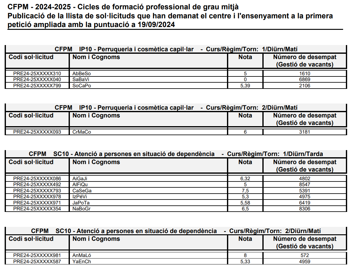 • Preinscripció i matrícula: dates, llistes, oferta, barems…