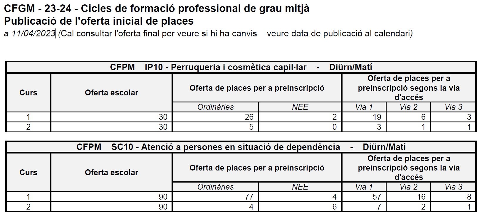 Preinscripció i matrícula: dates, llistes, oferta, barems…