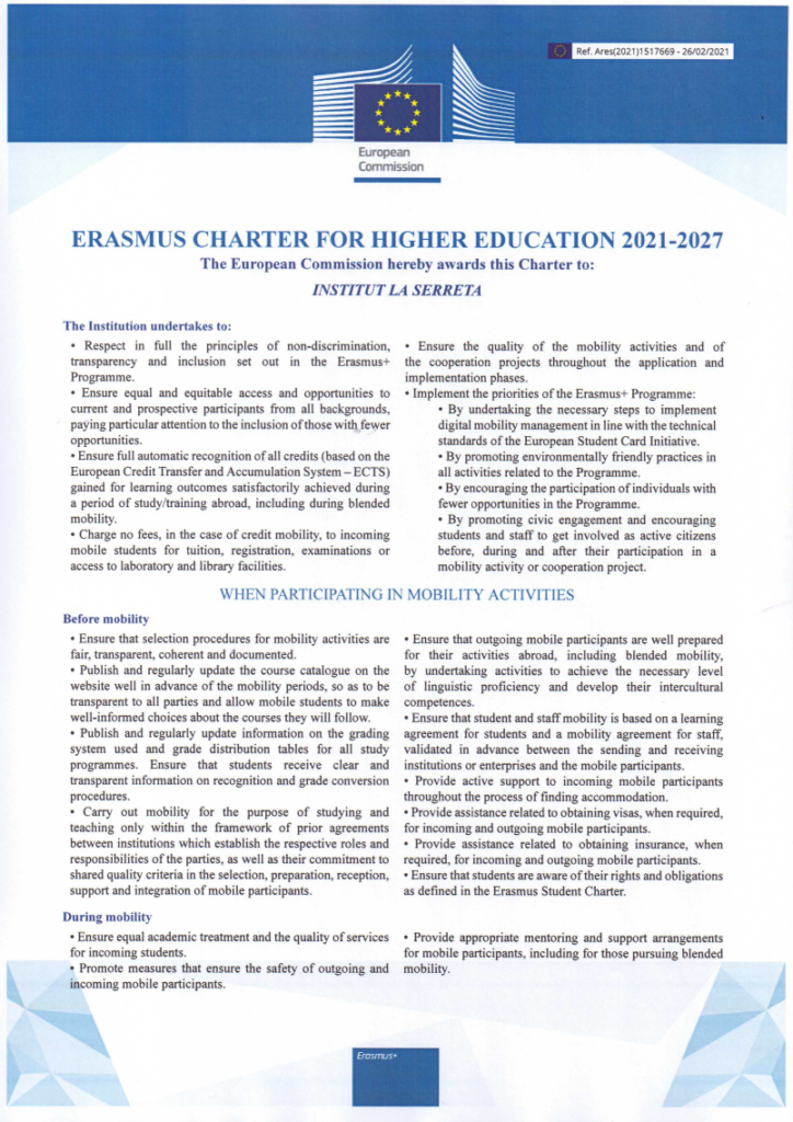 El nostre centre participa des del curs 2016/17 al Programa de mobilitat formativa i cooperació europea i internacional en els ensenyaments professionals amb la finalitat de rebre suport per a poder realitzar: