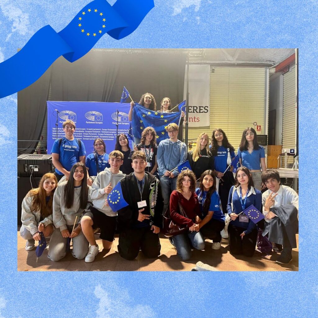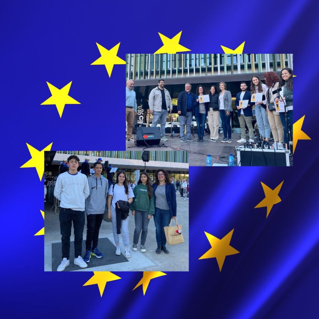 El passat divendres dia 9 de maig, vam participar a la celebració del Dia d’Europa a les Cotxeres de Sants amb els nostres ambaixadors júnior del Parlament Europeu