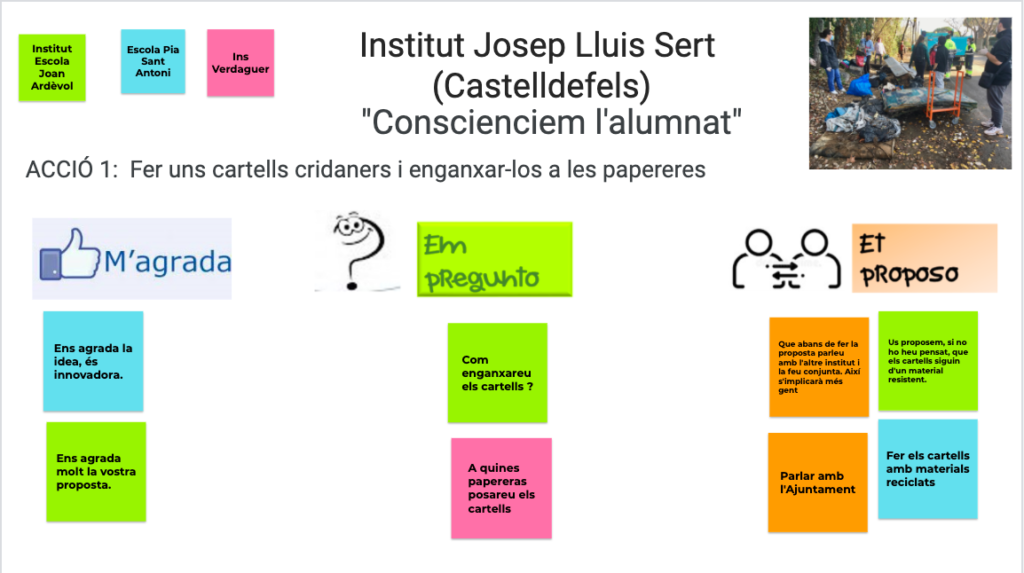 Aquesta vegada, després de preparar-la durant setmanes, han format part d’una trobada online, organitzada pels responsables del projecte “Tinguem cura del Planeta”. Amb altres tres instituts de Catalunya (dos de Barcelona i un de Cambrils) el passat 15 d’abril han format part d’un meet on cada centre ha exposat una problemàtica local i ha intercanviat possibles solucions amb la resta.