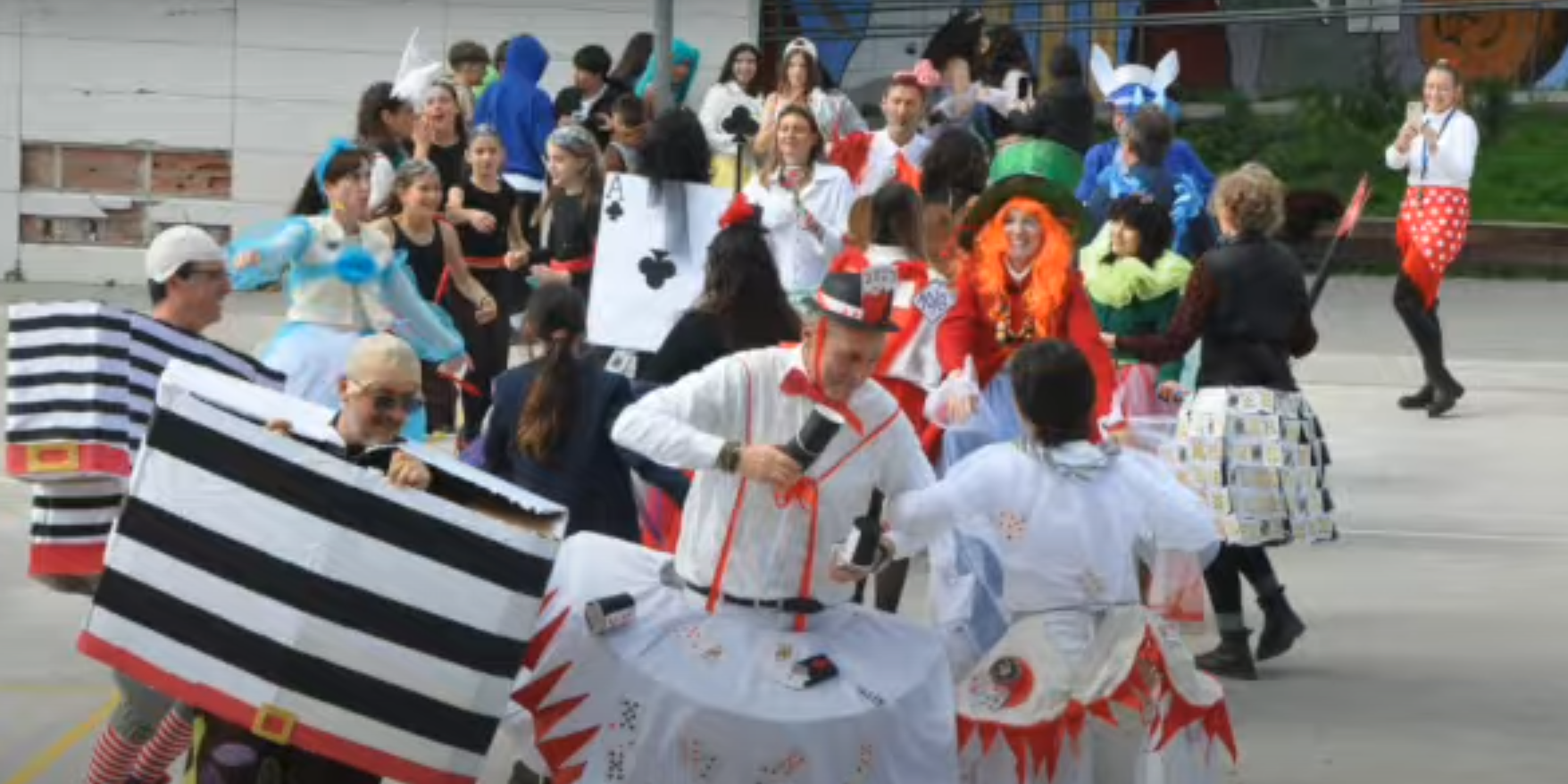 La jornada va començar a dos quarts de nou del matí. L’alumnat va arribar amb moltes ganes de passar-s’ho bé i lluir les seves disfresses, per això vam disposar d’un temps per acabar de preparar-les. Mentre els alumnes enllestíem els últims preparatius de vestuari, el professorat ja lluïa els seus vestits. Alguns professors anaven de la “Fèria” d’abril. D’altres van anar customitzats d’Alícia al país de les meravelles.