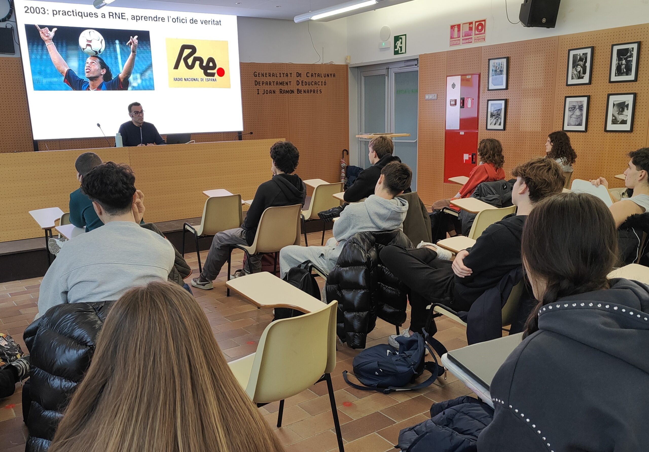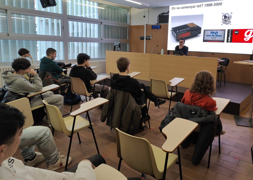 Recentment hem tingut el plaer de rebre la xerrada d’un periodista professional en actiu. Cristian Mestres, un dels actuals especialistes en cobertura d’esports, ha assistit a l’institut Joan Ramon Benaprès per compartir i explicar-nos de primera mà l’ofici del periodista a la ràdio i a la tele.