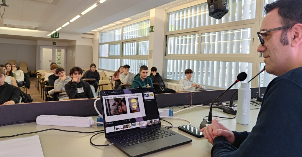 De forma cronològica, ens ha començat esmentant quin va ser el seu origen al món comunicatiu i audiovisual. Ens ha mostrat diversos dels fragments d’àudio i de vídeo que té publicats i ens els ha contextualitzat i analitzat.