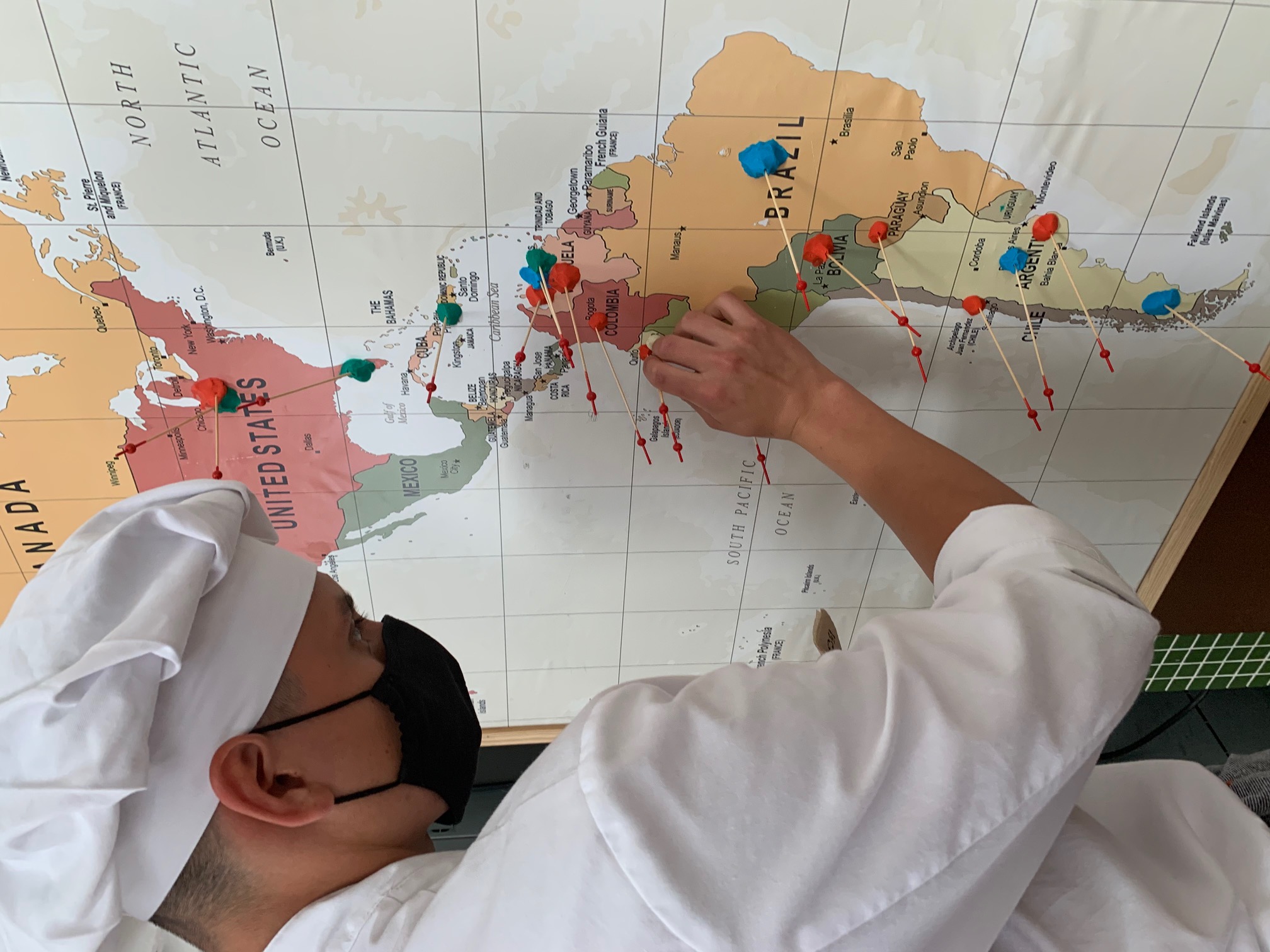 Feu una ullada a aquest mapa i veureu que hi ha alumnat de quasi tots els continents, només ens falta Oceania! Alguns alumnes s’han sorprès en veure que ja hi havia una bandereta al seu país i això volia dir que hi havia algun altre noi o noia amb el mateix origen. I ens expliquen amb orgull singularitats dels seus països i històries de les seves famílies que continuen vivint allà, i les escoltem amb curiositat i emoció.