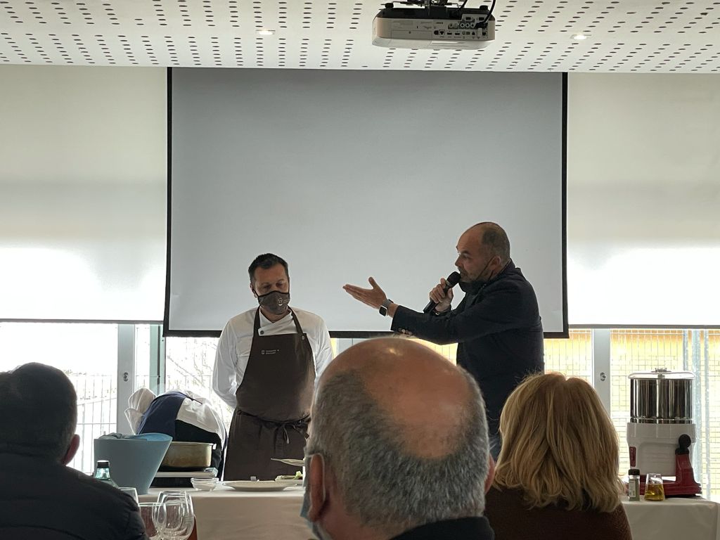 En aquesta jornada vem poder gaudir de la presencia d’Oriol i Mateo del restaurant Compartir i Disfrutar , on ens van explicar i elaborar un plat amb gamba .