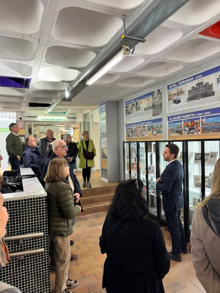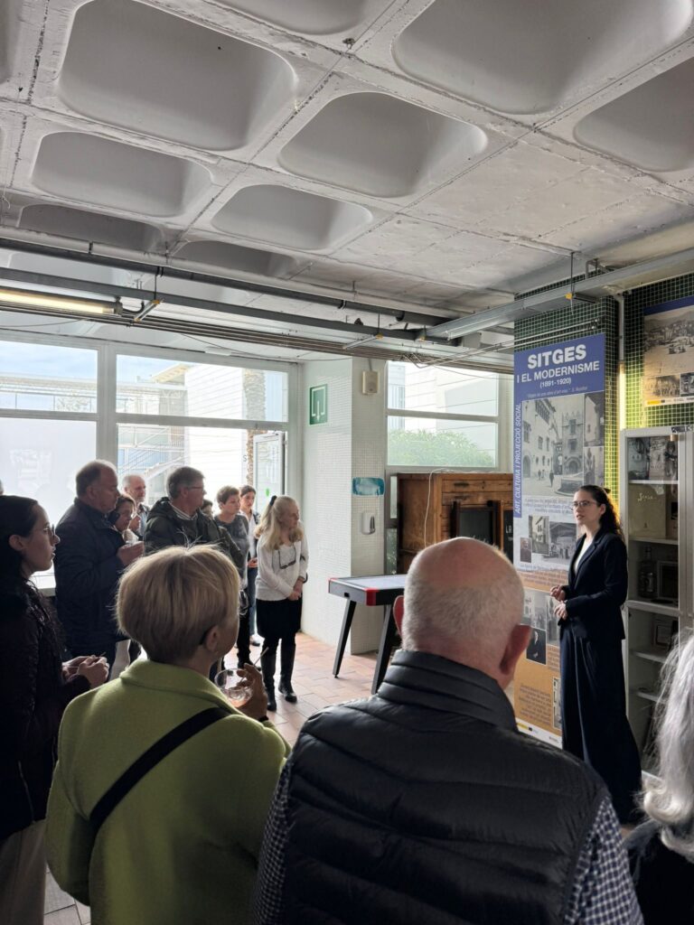 Les visites guiades van començar el divendres 20 de febrer, amb alumnat de primer d’Allotjaments Turístics com a protagonista en l’explicació del recorregut pels plafons instal·lats al vestíbul del centre. Dies més tard, l’espai també va acollir els participants del Ral·li Internacional de Cotxes Antics Barcelona–Sitges, que van visitar el museu i van compartir un dinar a l’institut, unint patrimoni històric, motor i turisme en una mateixa experiència.
