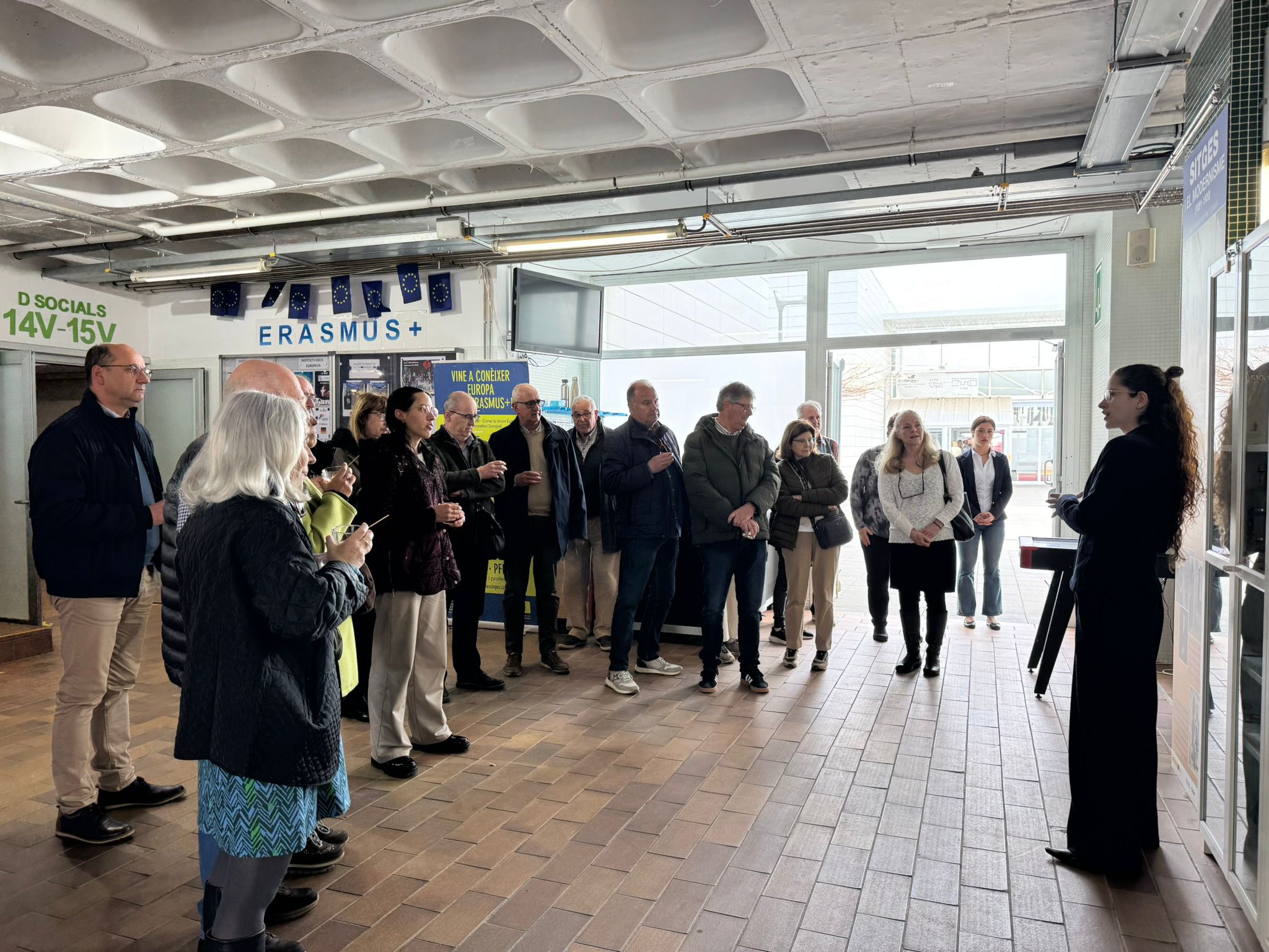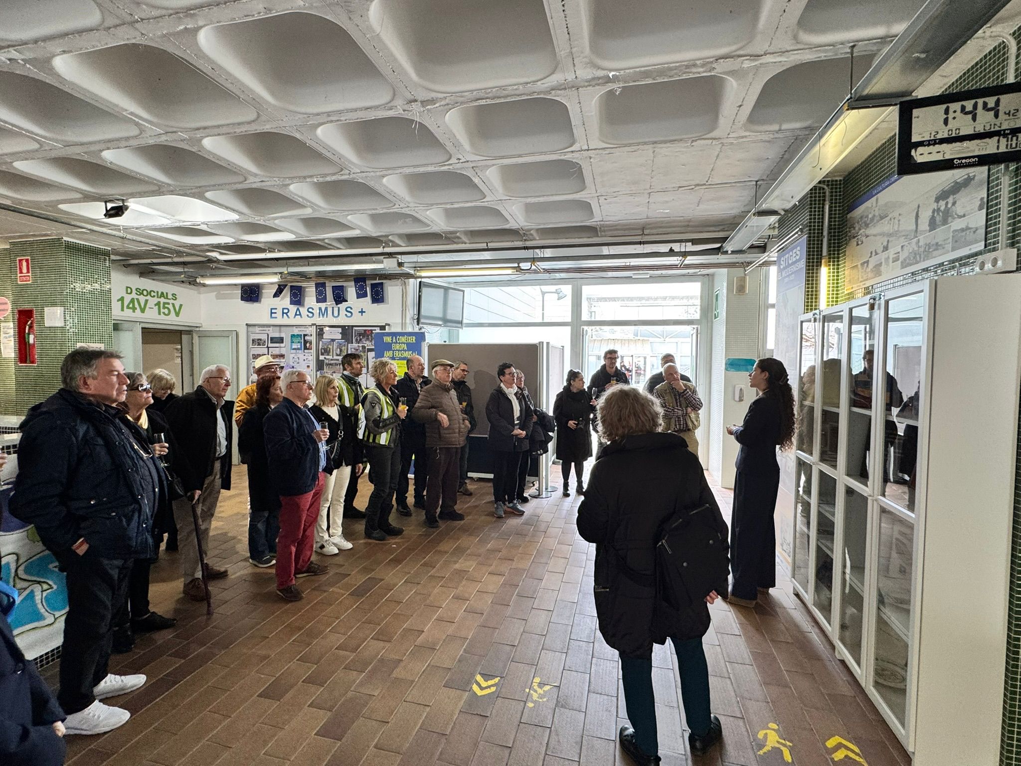Les visites guiades van començar el divendres 20 de febrer, amb alumnat de primer d’Allotjaments Turístics com a protagonista en l’explicació del recorregut pels plafons instal·lats al vestíbul del centre. Dies més tard, l’espai també va acollir els participants del Ral·li Internacional de Cotxes Antics Barcelona–Sitges, que van visitar el museu i van compartir un dinar a l’institut, unint patrimoni històric, motor i turisme en una mateixa experiència.