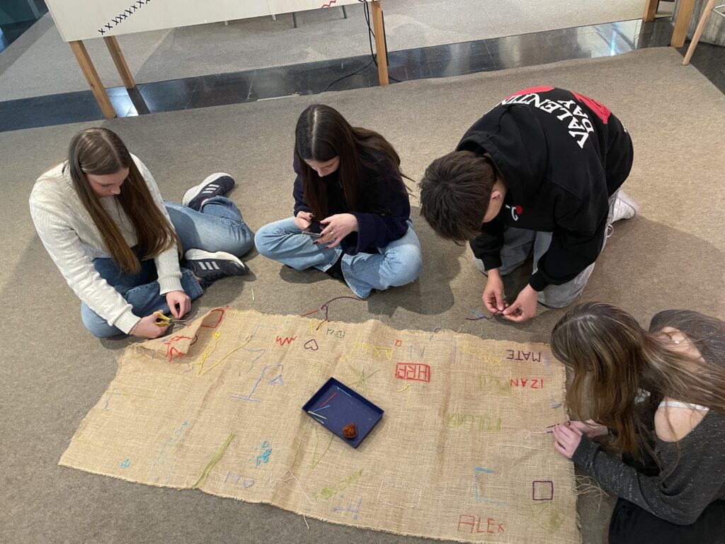 En el taller van aprendre a brodar, activitat cultural que ens fa de pont amb les cultures indígenes i que representa la relació de teixit que tenim totes les comunitats del món. En l’exposició han conegut, a través d’obres d’artistes indígenes, com són les seves cosmovisions i quina crítica fan a la visió estereotipada que tenim del que és un indígena. També han pogut recordar els efectes del colonialisme i l’explotació del territori per part de la societat “civilitzada”.