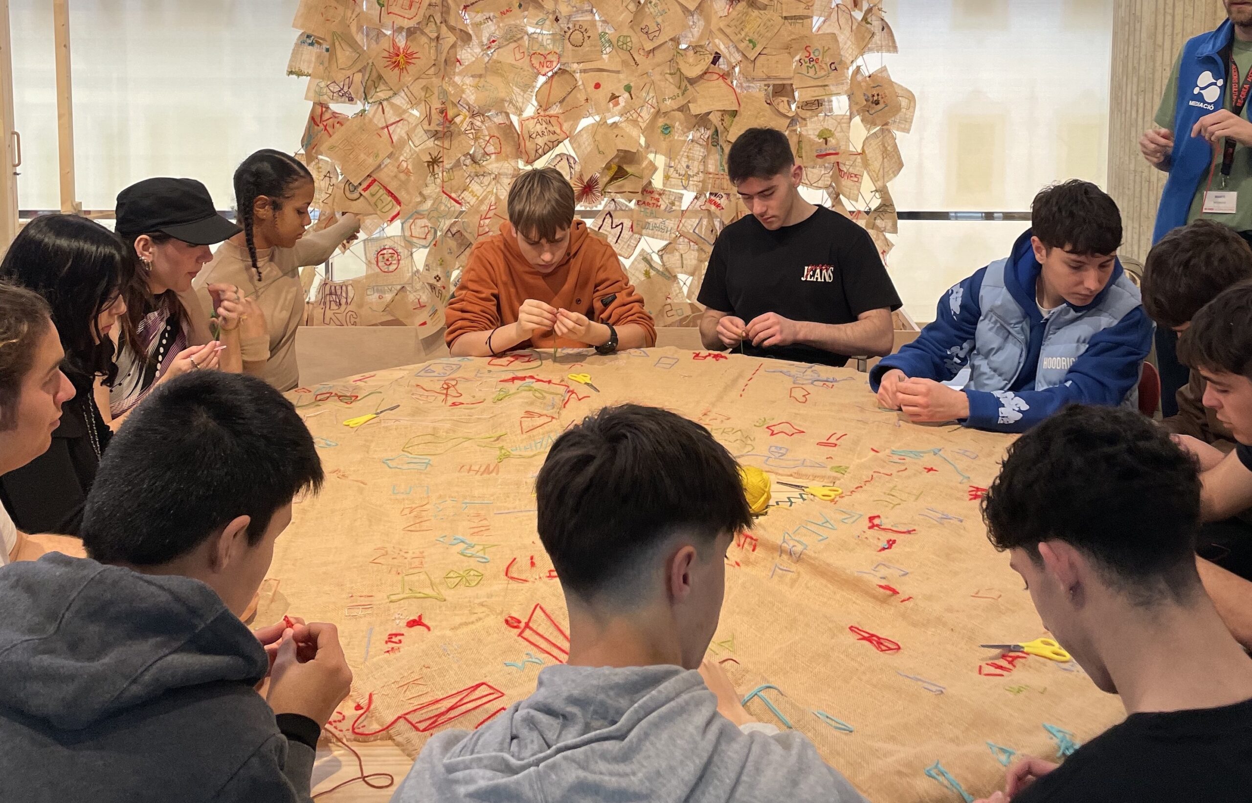 En el taller van aprendre a brodar, activitat cultural que ens fa de pont amb les cultures indígenes i que representa la relació de teixit que tenim totes les comunitats del món. En l’exposició han conegut, a través d’obres d’artistes indígenes, com són les seves cosmovisions i quina crítica fan a la visió estereotipada que tenim del que és un indígena. També han pogut recordar els efectes del colonialisme i l’explotació del territori per part de la societat “civilitzada”.