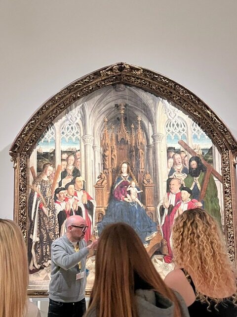 El recorregut va continuar per les sales d’art gòtic i del renaixement, on l’alumnat va poder identificar l’evolució dels estils, l’aparició de la perspectiva, el tractament de la llum i la figura humana, així com el canvi en els temes i encàrrecs artístics. Ja a les col·leccions d’art modern i contemporani, les obres de Santiago Rusiñol i Ramon Casas van tenir un protagonisme especial, atès que tots dos artistes també són presents al Cau Ferrat de Sitges, un espai molt vinculat al nostre centre i al nostre entorn.