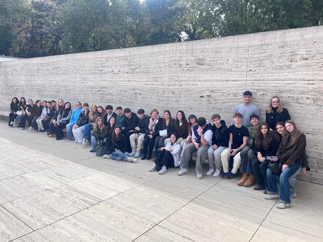 Finalment, la visita al Pavelló Mies van der Rohe va permetre entrar en contacte directe amb una de les obres emblemàtiques de l’arquitectura moderna del segle XX. L’alumnat va poder analitzar in situ conceptes com l’espai diàfan, la funcionalitat, l’ús dels materials i el diàleg entre interior i exterior, amb la qual cosa es completava una jornada que va connectar teoria i pràctica i va reforçar la formació humanística i artística del nostre alumnat.