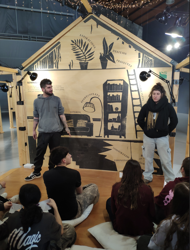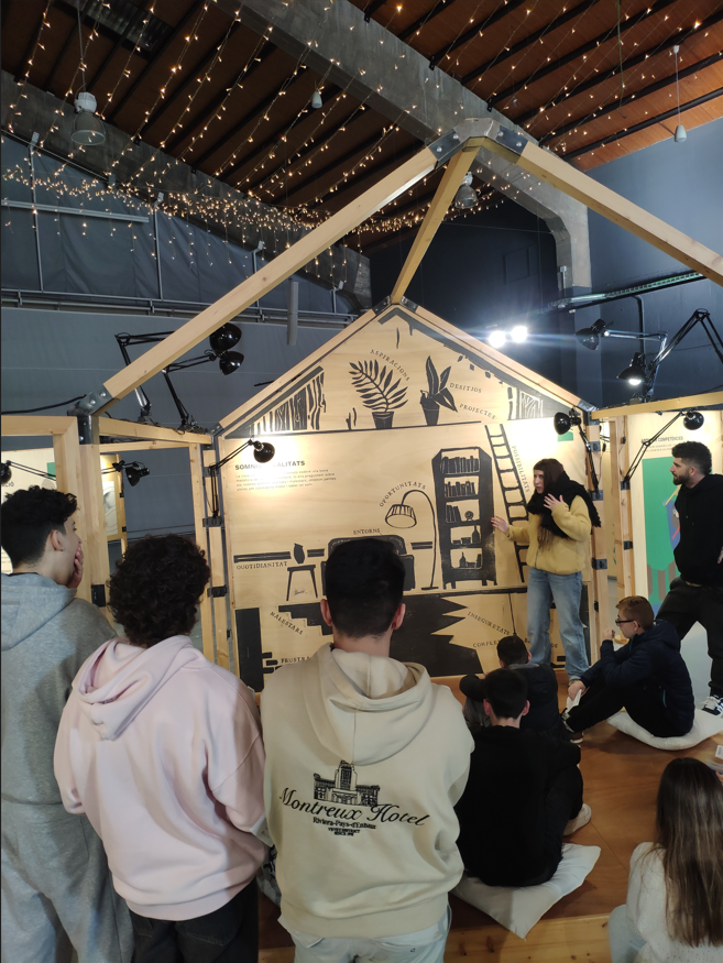 El muntatge expositiu utilitza la metàfora d’una casa per representar el camí personal de cada individu i el món canviant en què vivim. Mitjançant diferents panells, testimonis i activitats, l’alumnat pot reflexionar sobre qui és, quins són els seus objectius i quines eines necessita per avançar en el seu itinerari vital.