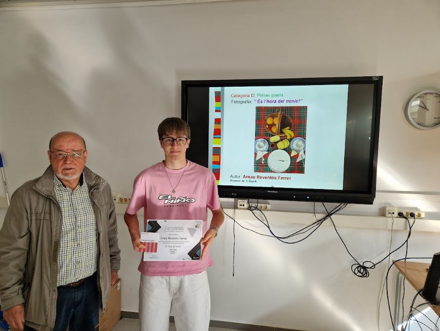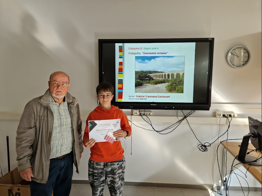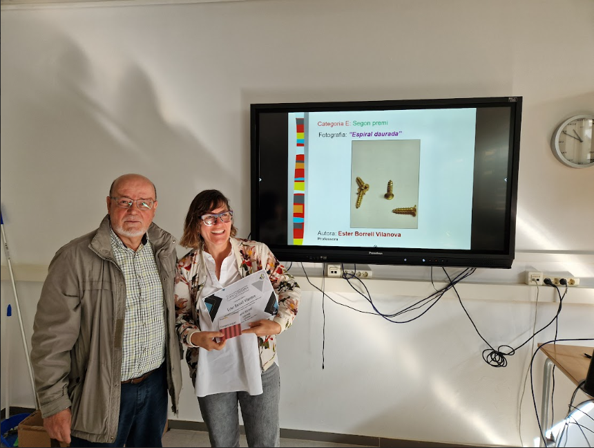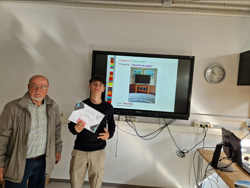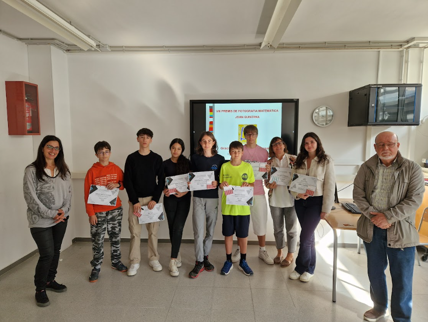 04/06/25El passat 12 de maig va tenir lloc a l’institut l’acte d’entrega dels vuitens Premis de Fotografia Matemàtica Joan Quintana. El mateix Joan Quintana, professor jubilat, molt estimat per tota la comunitat educativa, va assistir a l’esdeveniment per fer lliurament dels guardons.