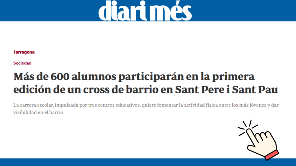 Aquest dimecres 7 de maig, el nostre barri ha viscut una jornada esportiva i comunitària molt especial amb la celebració del primer cros de barri a Sant Pere i Sant Pau, una iniciativa compartida entre les escoles Sant Pere i Sant Pau, Marcel·lí Domingo i el nostre centre. La cursa ha comptat amb la participació de més de 600 alumnes, des d’infantil fins a sisè de primària, i ha tingut com a punt de sortida l’Institut.