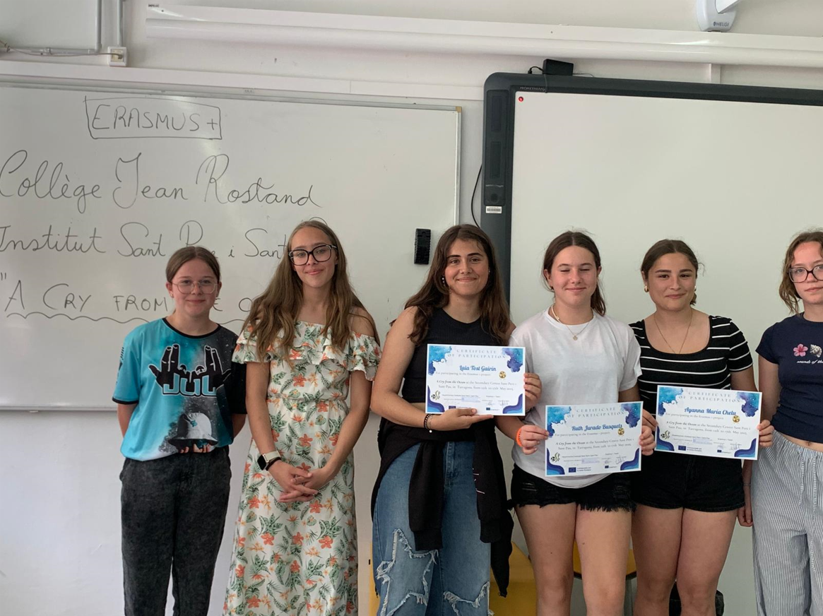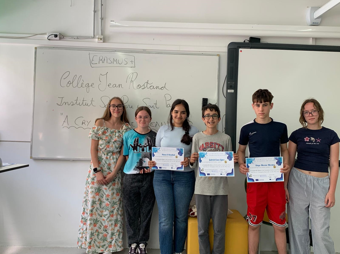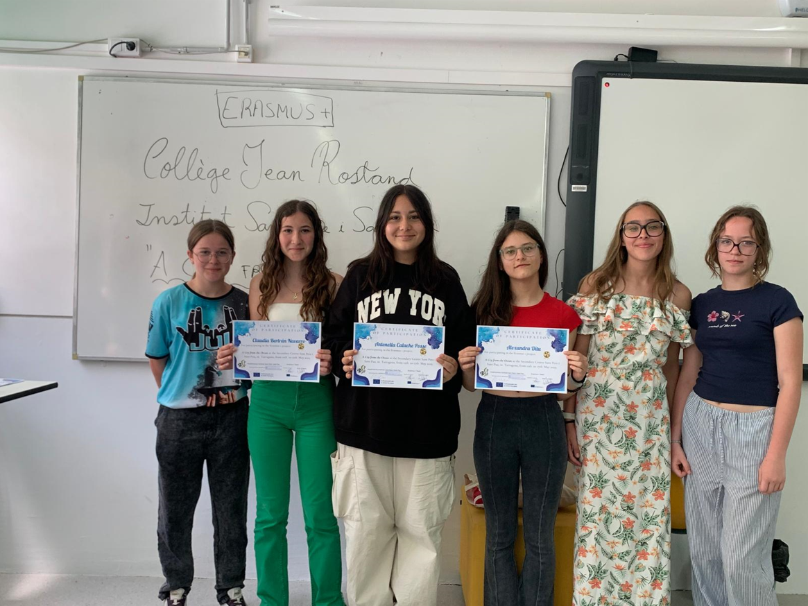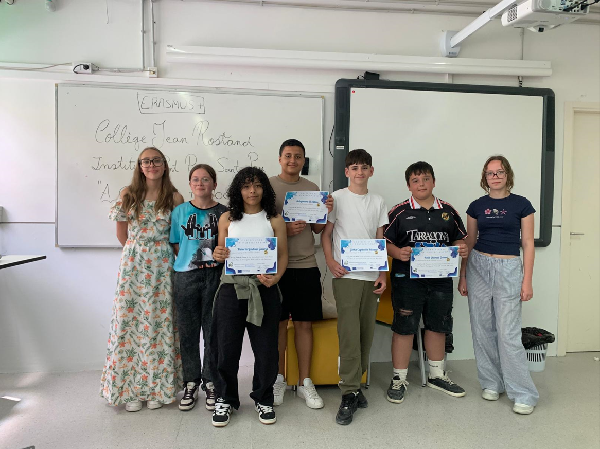 On Thursday 15th, we all visited the Roman Tarraco. We had the opportunity to enjoy the explanations on the Roman Walls, the Circus and the Amphitheatre. Then, we went to our High School Sant Pere i Sant Pau, and the French group and our students received their Certificates of Participation. They all felt very proud of having participated in this project.