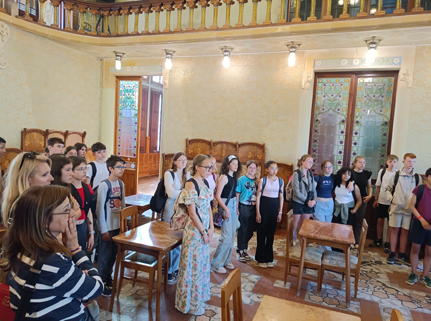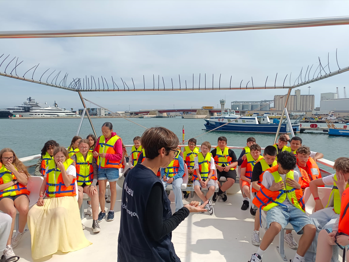 The next day, Wednesday 14th, was dedicated to water activities. In the morning, our students did water activities at Nàutic Club (Padel Surf, Knee Padel, and Kayak). In the afternoon, we visited the Harbour Market (La Llotja). Inside, there was the Blue Observatory, where students could see and learn about the different fish at the Mediterranean Sea. Later, we took a ride on a boat along the harbour and we listened to the different explanations on it done by a guide.