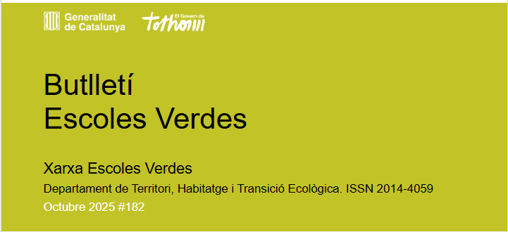 Butlletí Escoles Verdes #182 Feu un comentari / Per admin / 12/10/2025 / Escola verda General Portada Consulteu totes les novetats al Butlletí Escoles Verdes del Dept. de Territori, Habitatge i Transició Ecològica
