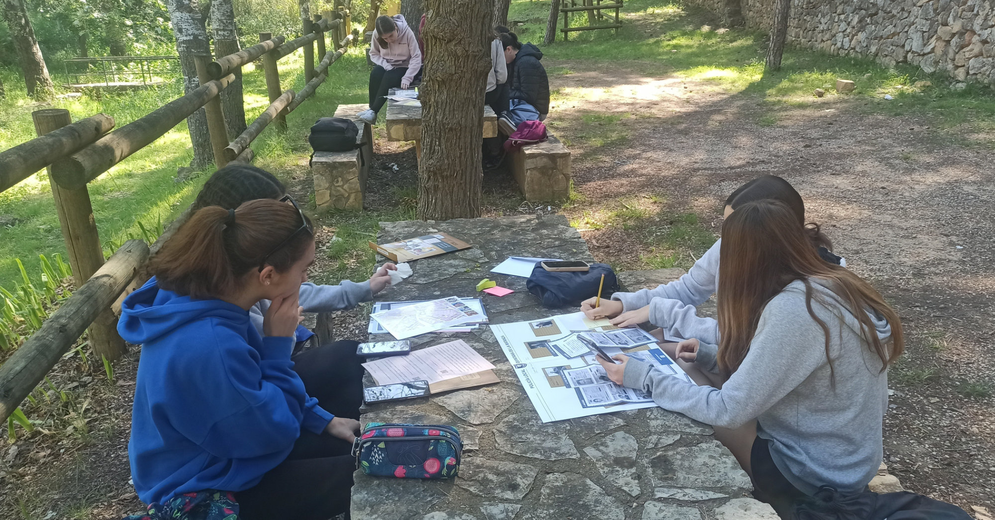 L’activitat va començar al matí a l’àrea recreativa de la Fonteta, on el professor va facilitar a cada grup un cas fictici però amb detalls molt reals, que incloïa proves com testimonis, empremtes dactilars, proves forenses, registres, mapes i tota mena de documents relacionats amb el cas.