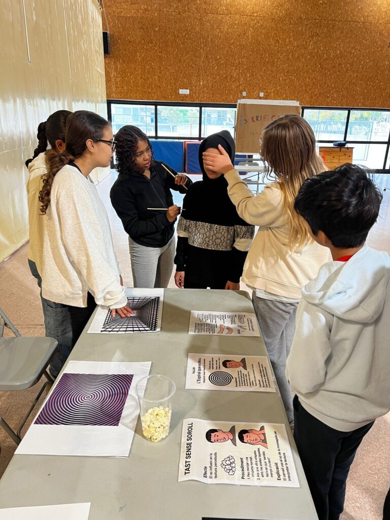 El passat divendres 14 de novembre els i les alumnes de 4t i 3r d’ESO van preparar i dinamitzar uns tallers per a celebrar la Diada de la Ciència i fer arribar les ciències experimentals als més petits de l’ESO. Durant tot el matí, els alumnes de 1r i 2n van poder baixar a la sala polivalent a viure la Ciència de primera mà amb diversos tallers; van poder veure la màgia de les reaccions químiques fent esferificacions de colors i creant tinta i missatges invisibles, van poder comprovar que els sentits ens enganyen amb il·lusions òptiques i sensorials i van crear el seu propi fòssil al moment. Va ser una Jornada molt interessant i  tothom va aprendre alguna cosa! Fins l’any que ve!