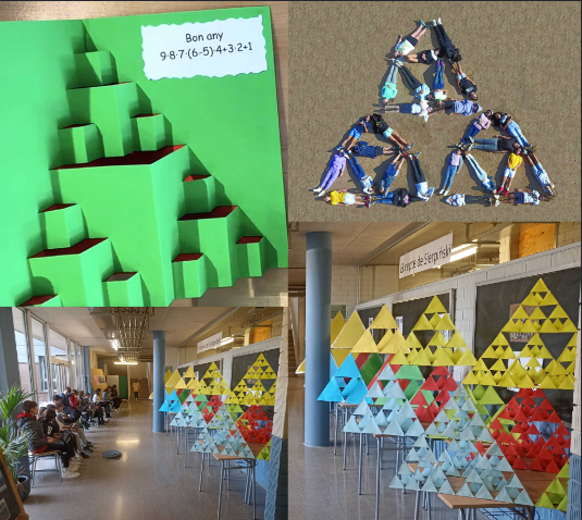 09/01/23L’alumnat de 1r i 2n d’ESO han construït una exposició matemàtica a partir de les estructures fractals del tetraedre de Sierpiński. Posteriorment, han fet un estudi matemàtic a partir d’uns reptes amb el qual han pogut visualitzar les potències, buscar patrons i analitzar superfícies, volums i dimensions fractals. L’activitat està recollida en aquesta pàgina web. Emmarcat en el mateix projecte l’alumnat de 1r d’ESO ha fet un mosaic humà amb forma de triangle de Sierpiński i per acabar l’any a 1r i 2n d’ESO han dissenyat unes postals de Nadal de9 tipus fractal que hem anomenat “postals de Sierpiński”.
