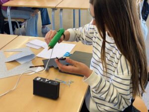Els alumnes de 2n d’ESO han reforçat algunes competències matemàtiques i artístiques tals com mesurar i construir acuradament, resoldre problemes visuals, aplicar estratègies de planificació i interpretar i representar formes bidimensionals i tridimensionals. I com a proposta final han contruït una escultura amb poliedres.