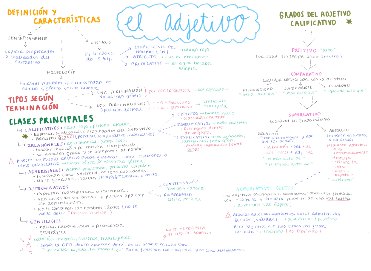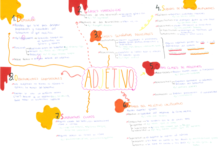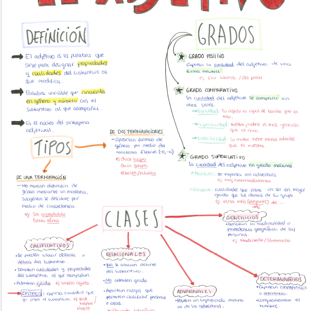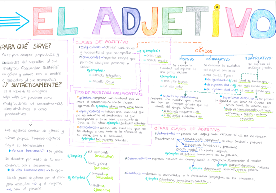 Nuestros alumnos de 2º de bachillerato, en la materia de lengua castellana y literatura, han presentado unos mapas y esquemas visuales increíbles para explicar la teoría del adjetivo.