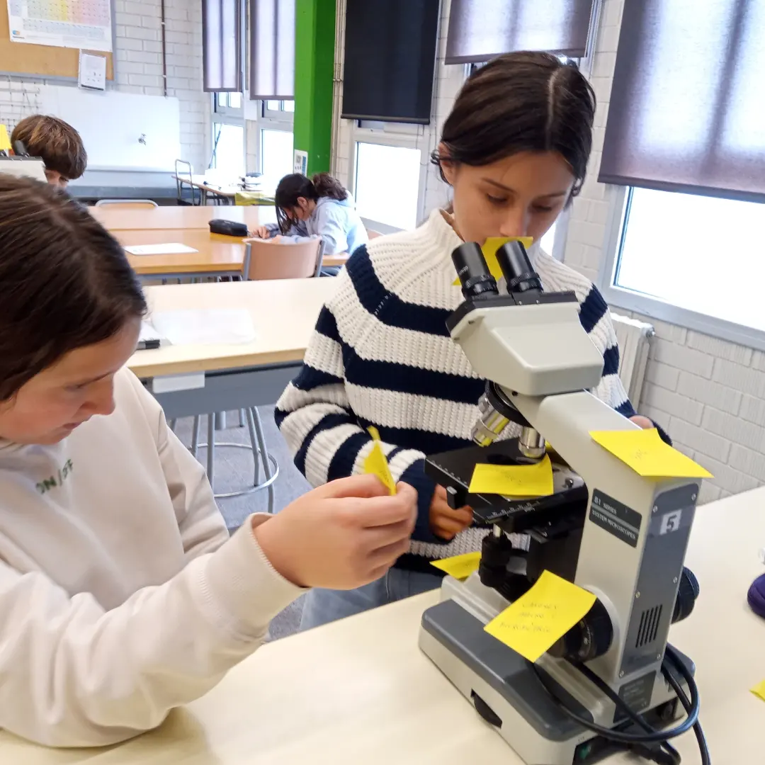 Fa unes setmanes al laboratori els alumnes de 1r d’ESO han estat treballant el funcionament i les parts del microscopi òptic amb una dinàmica de post-its per anar recordant les parts. També han investigat i experimentat amb el quefir: han pogut observar la seva textura, l’olor que fa, té un pH una mica més àcid que la llet i conté milions de microorganismes!