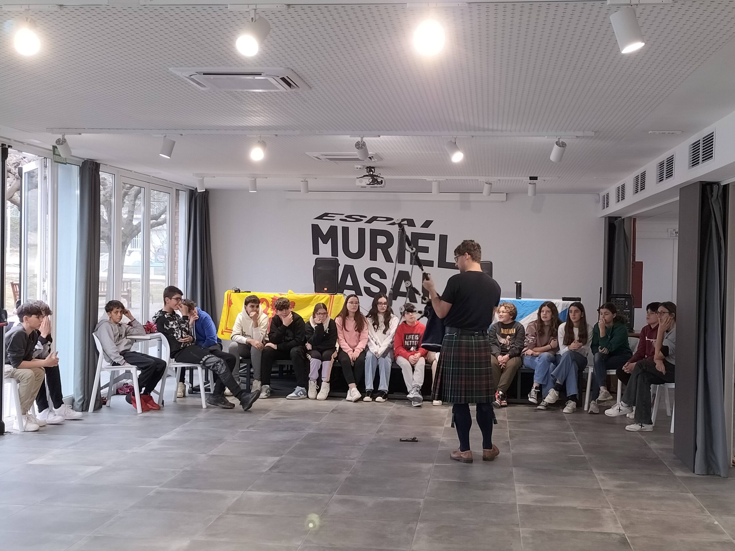 Per tercer any consecutiu, l’alumnat de 2n d’ESO ha participat en un taller de dansa i cultura escocesa impartit íntegrament en anglès per @schoolsceilidh. Els alumnes han après danses tradicionals com Up and Down The River, The Wedding, The Sailor Dance i Cutting the Tree, han conversat amb en Tom sobre cultura escocesa, i han pogut escoltar en directe la gaita de les Highlands.