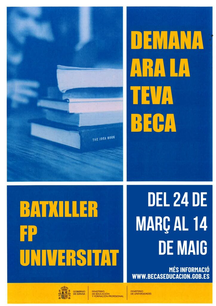 Ja ha sortit la Publicació de la convocatòria de beques per a ensenyaments postobligatoris no universitaris, curs 2025-2026 El termini per sol·licitar les beques és del 24 de març fins al 14 de maig de 2024. Has de sol·licitar la beca dins d’aquest termini, encara que no sàpigues què estudiaràs o, fins i tot, encara que […]