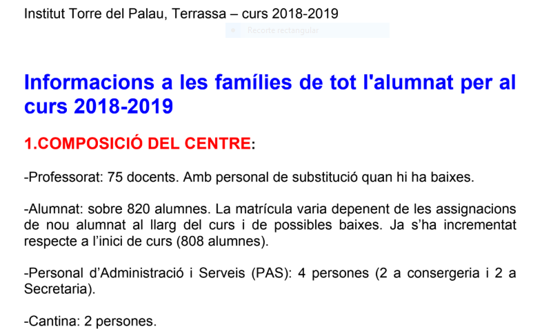 A les famílies del centre: Transcorreguts uns dies des de l’inici del nou curs escolar, adjunt us envio un document primer on podeu llegir i recordar algunes informacions. Unes noves i d’altres enviades al mes de juliol. Dins hi ha enllaços a d’altres informacions. Us aconsello que ho descarregeu per assegurar el funcionament dels