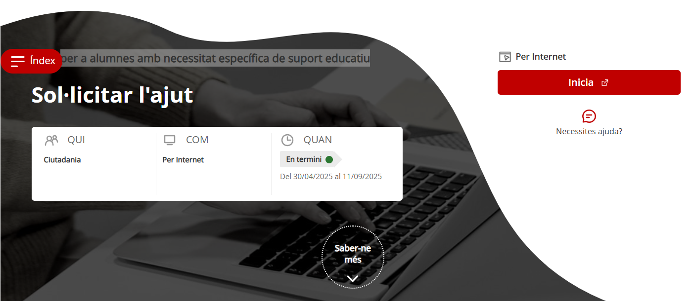 Publicada la convocatòria d’Ajuts per a alumnes amb necessitat específica de suport educatiu
