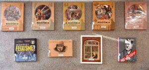 Hem d’agrair a les Biblioteques municipals de Torredembarra i la Fundació Onada que ens hagin deixat uns còmics i altres publicacions sobre la Segona Guerra Mundial. Disposem d’aquestes publicacions a la nostra biblioteca fins el 25 de maig del curs actual que només es podran consultar a l’estona del pati de dilluns a divendres. L’alumnat interessat pot ampliar la seva consulta acudint a la biblioteca Mestra Maria Antònia.