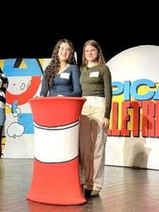La Judit Pons Martínez i la Júlia Solé Borrellas han representat avui el nostre institut a les finals de la zona Mestral (Camp de Tarragona) del concurs de lletreig en català “Pica Lletres”. Del 28 de març a l’11 d’abril s’emetran els programes a la televisió local TAC 12.