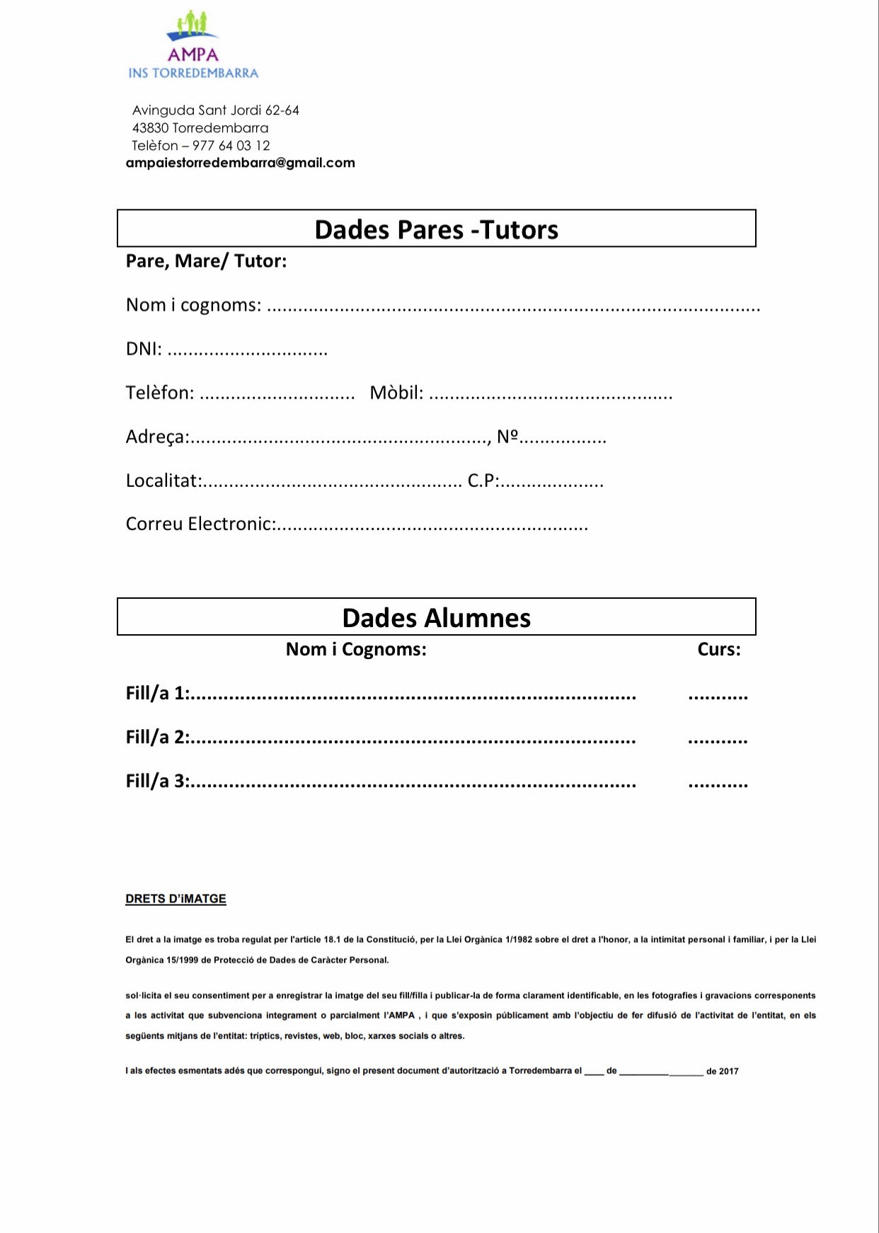Aquí us podeu descarregar i imprimir el full d’inscripció a l’AMPA: