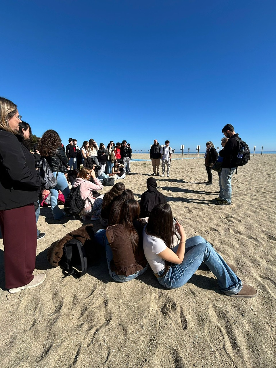 En primer lloc, al memorial del Camp de Concentració de Rivesaltes i al espai de la memòria a Argelers,on vam conèixer el testimoni de l’arribada dels espanyols que fugien de la victòria franquista durant la Retirada, i vam veure fotos, vídeos i documents sobre aquest fet històric. Després ens vam traslladar a la platja que, envoltada de filferro espinós i virgilada per guàrdies armats, va acollir de forma inhumana desenes de milers de famílies espanyoles: homes, dones, nens… considerats “indesitjables” per les lleis de la França d’aquell moment.