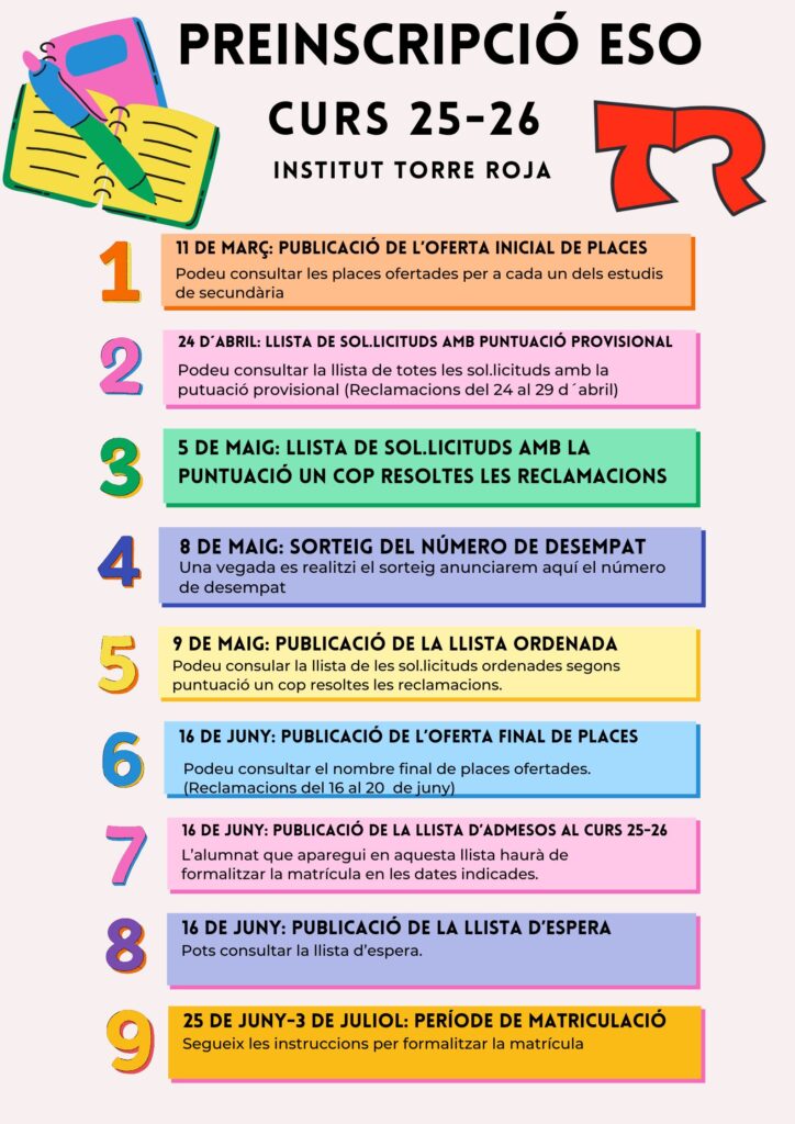 Per qualsevol dubte, podeu enviar un correu a preinscripcio_matricula@torreroja.cat