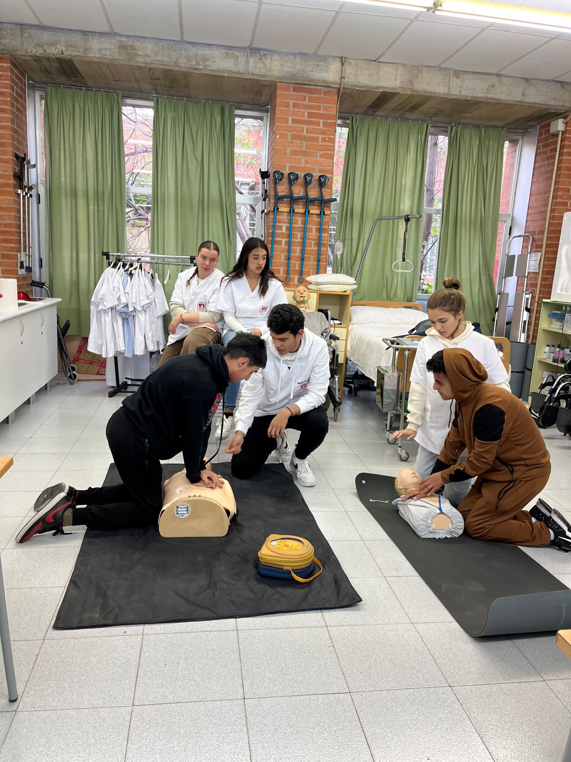 Els alumnes del cicle d’atenció a persones en situació de dependència , varen realitzar fa uns dies, un taller de primers auxilis amb companys del IFE. El taller va consistir , en primer lloc en mostrar als companys les tècniques per realitzar una Reanimació cardiopulmonar (RCP), en el cas d’un adult, un nen o un bebè. En segon lloc l’alumnat d’APD va ensenyar als companys què s’ha de fer davant d’una persona que s’està ofegant per culpa d’un cos estrany, el que es coneix com OVACE. La maniobra, coneguda , com Heimlich va ser realitzada amb èxit per part de tot l’alumnat de l’IFE. “Una experiència súper enriquidora, en la qual tots dos cicles van poder compartir experiències i coneixements.”FOTOS