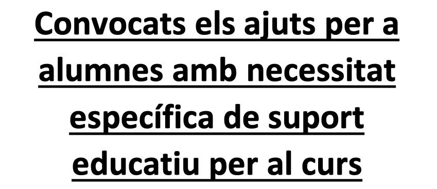Convocatòria d’Ajuts per a alumnes amb necessitat específica de suport educatiu Llegeix més »