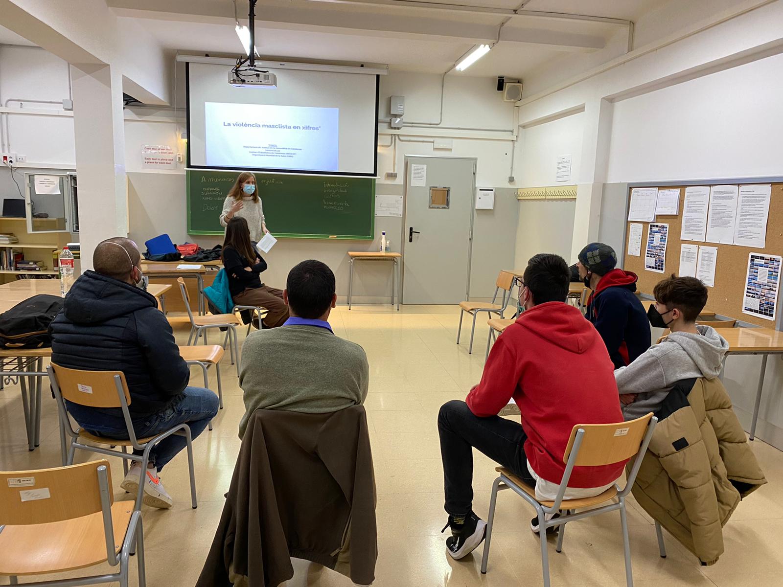 El passat divendres, 26 de novembre, a la tarda, es va dur a terme un taller amb els alumnes de gènere masculí de 1r i 2n de CFGM CAI/ATPD i CFGM IEA en el marc de les activitats programades a l’institut per celebrar el 25N, Dia Internacional per a l’eliminació de la violència contra les dones. La sessió va tenir lloc a l’aula de dependència de l’institut.