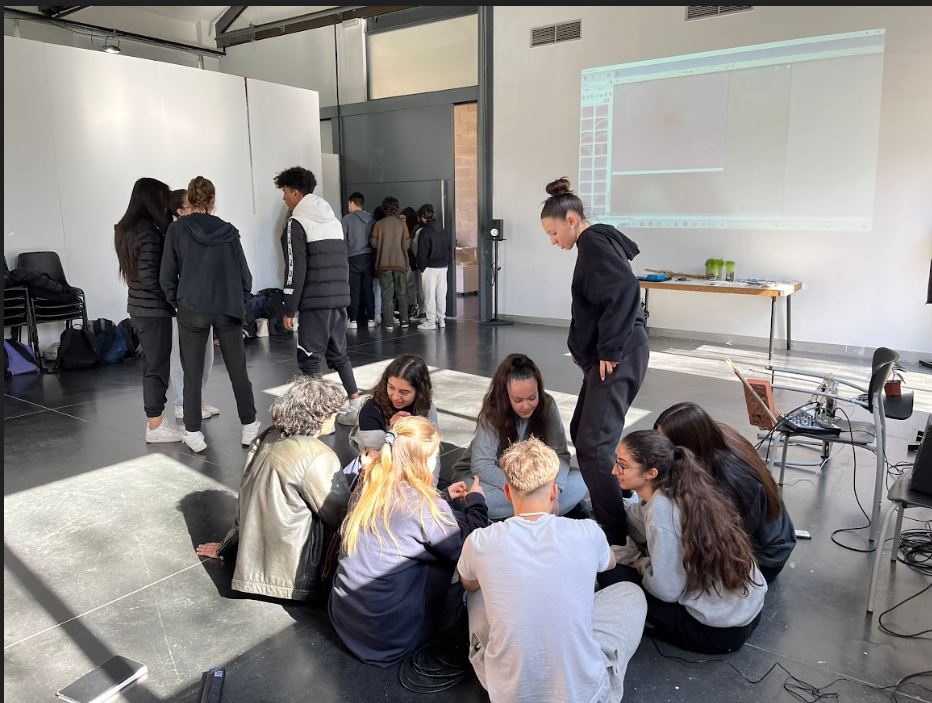 El 10 de març, l’alumnat de primer de Batxillerat Artístic va anar a l’assaig obert de Tangere de Paula Vicente a l’Estruch. Es tracta d’un projecte d’experimentació amb el so i el tacte mitjançant la curiositat, la prova i error, la intuïció.