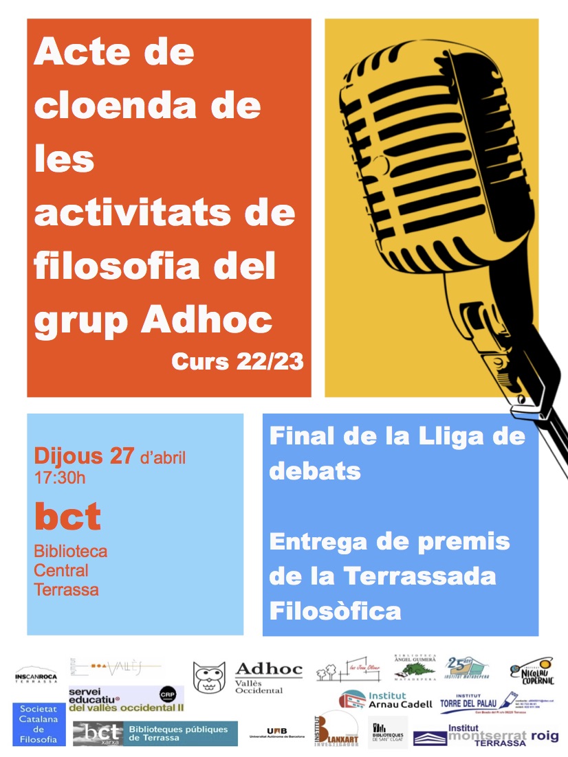 El 10 de març el nostre alumnat de B2 va participar en la Terrassada Filosòfica, una activitat organitzada pel grup Adhoc que té com a objectiu retornar la filosofia al carrer i reinterpretar la ciutat amb una mirada filosòfica mitjançant la fotografia. Enguany, la temàtica era “On trobem la bellesa a la ciutat?”.
