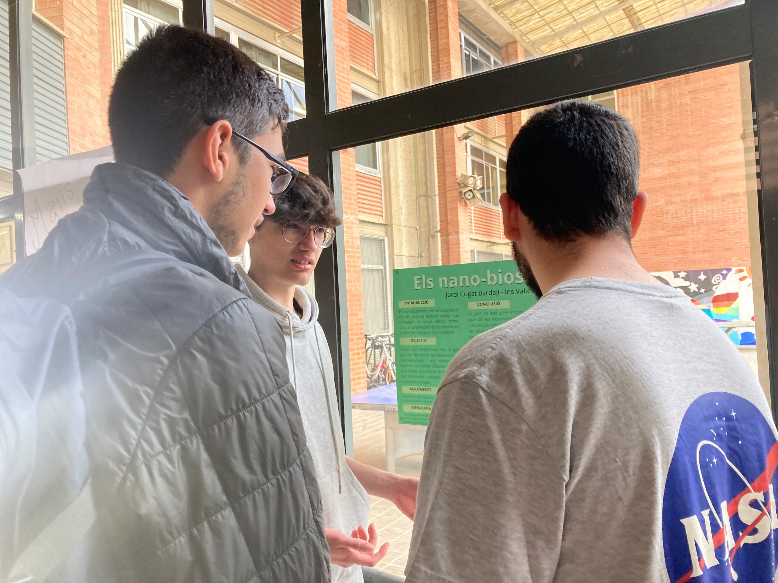 A la matèria de Reptes científics actuals, de 1r de batxillerat, s’ha dut a terme el projecte “expo2m” en col·laboració amb el Departament de Bioquímica i de Biologia Molecular de la Facultat de Medicina de la UAB. El projecte consisteix en l’elaboració de la comunicació científica d’una investigació pròpia, en format de pòster, i una posterior presentació del treball tenint en compte els paràmetres necessaris per a una exposició oral concisa i alhora engrescadora. Enguany el projecte ha girat entorn l’àrea de la Nanociència i l’alumnat de la matèria va presentar el seu pòster als companys de promoció el passat divendres 31 de març.