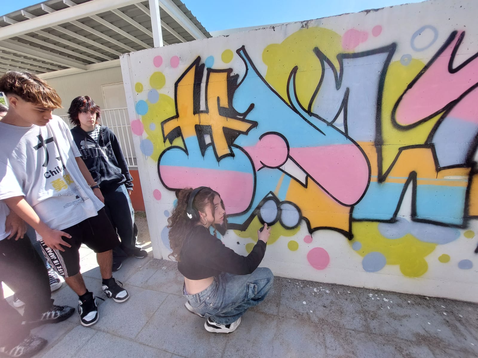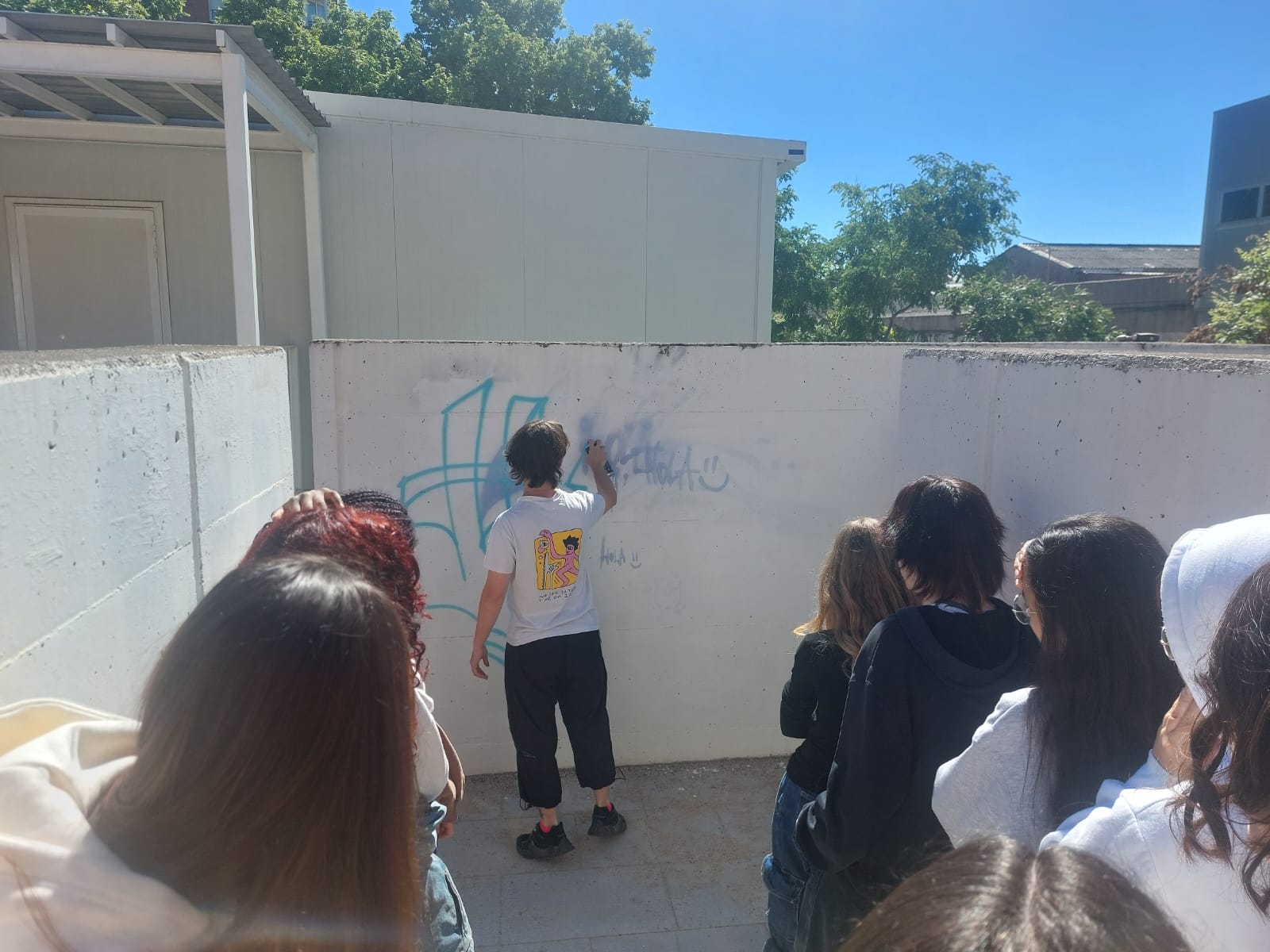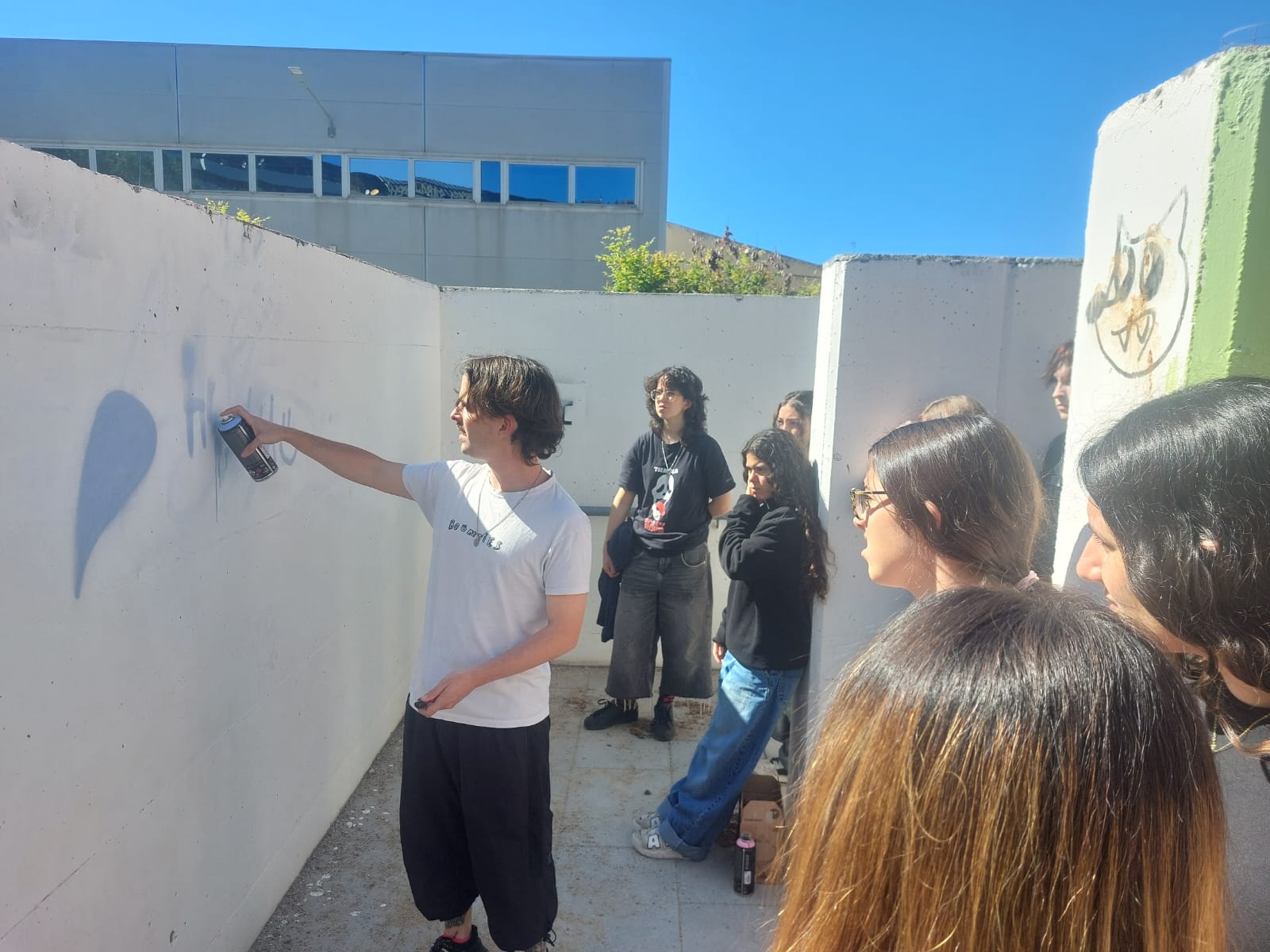 L’alumnat de l’optativa de Llenguatges artístics de B1 van realitzar un taller de grafiti amb l’artista @edmvndogarcia. Van poder aprendre algunes tècniques i posar-les en pràctica en una obra que podeu gaudir al costat dels mòduls. Aquest taller està destinat a preparar als futurs artistes que ens faran un mural al nostre gimnàs en les setmanes vinents.