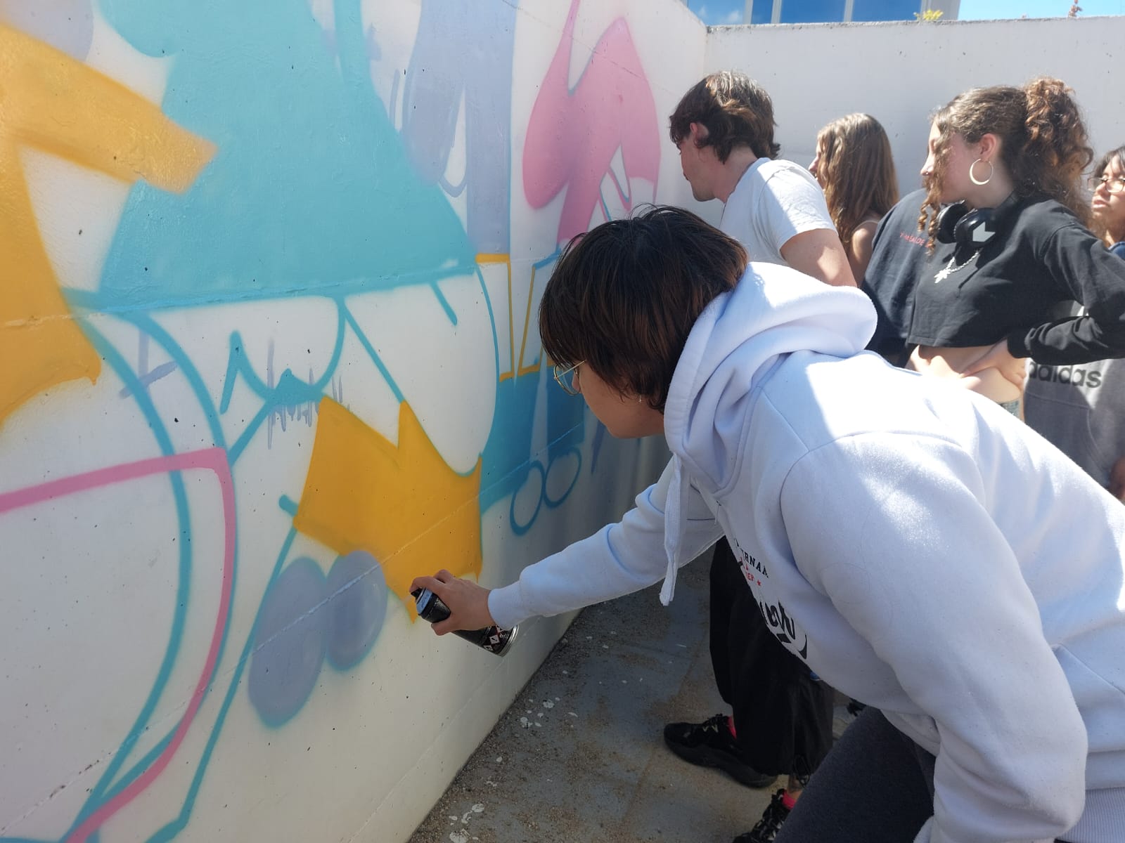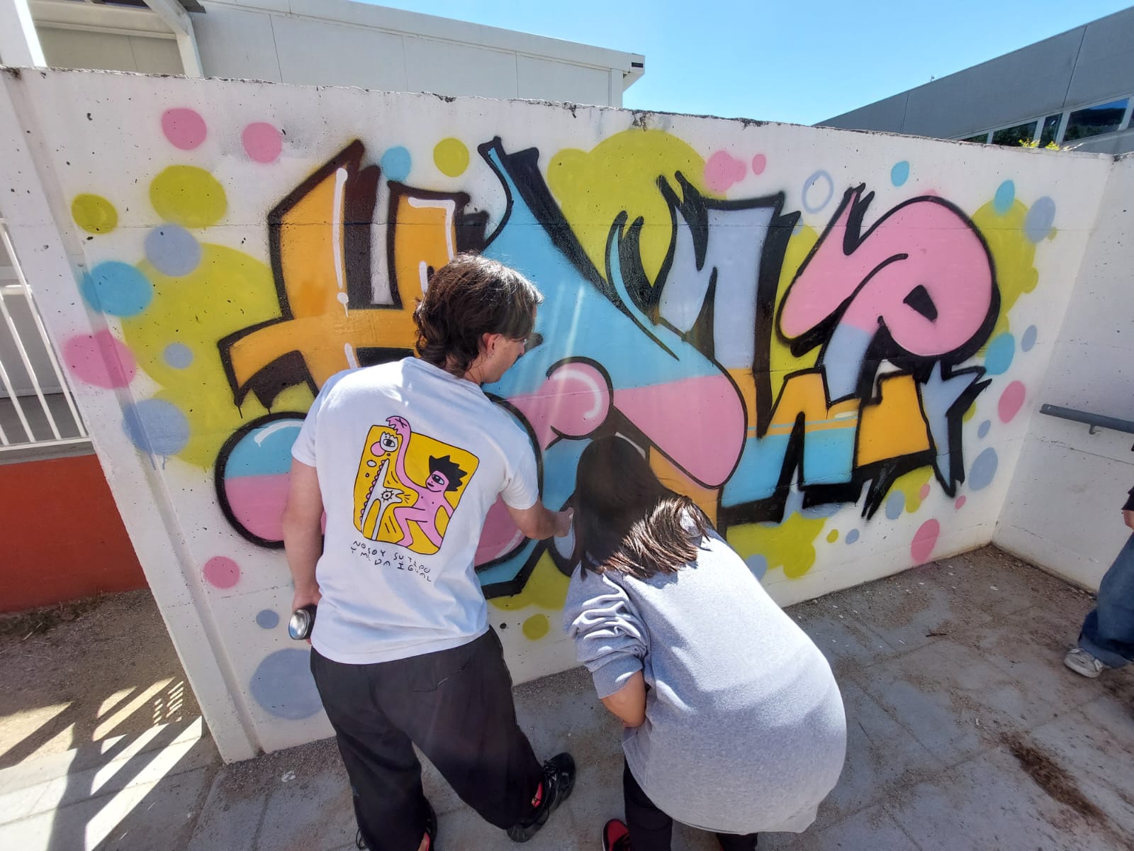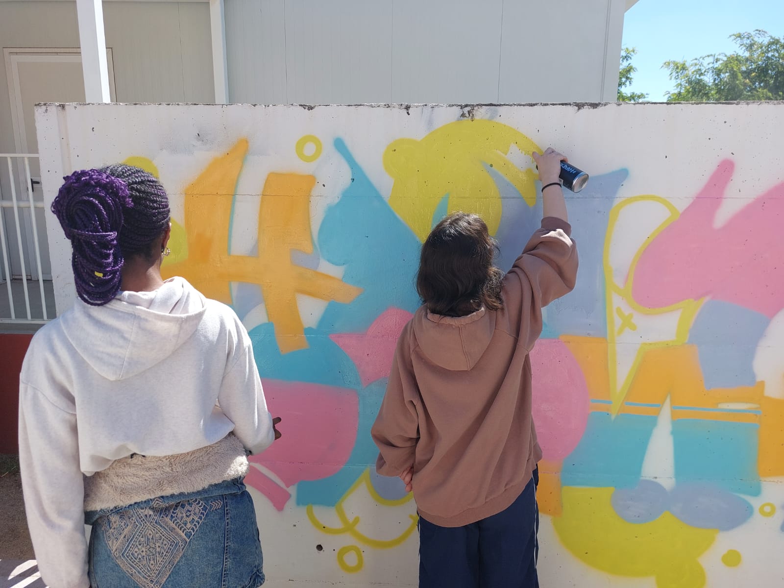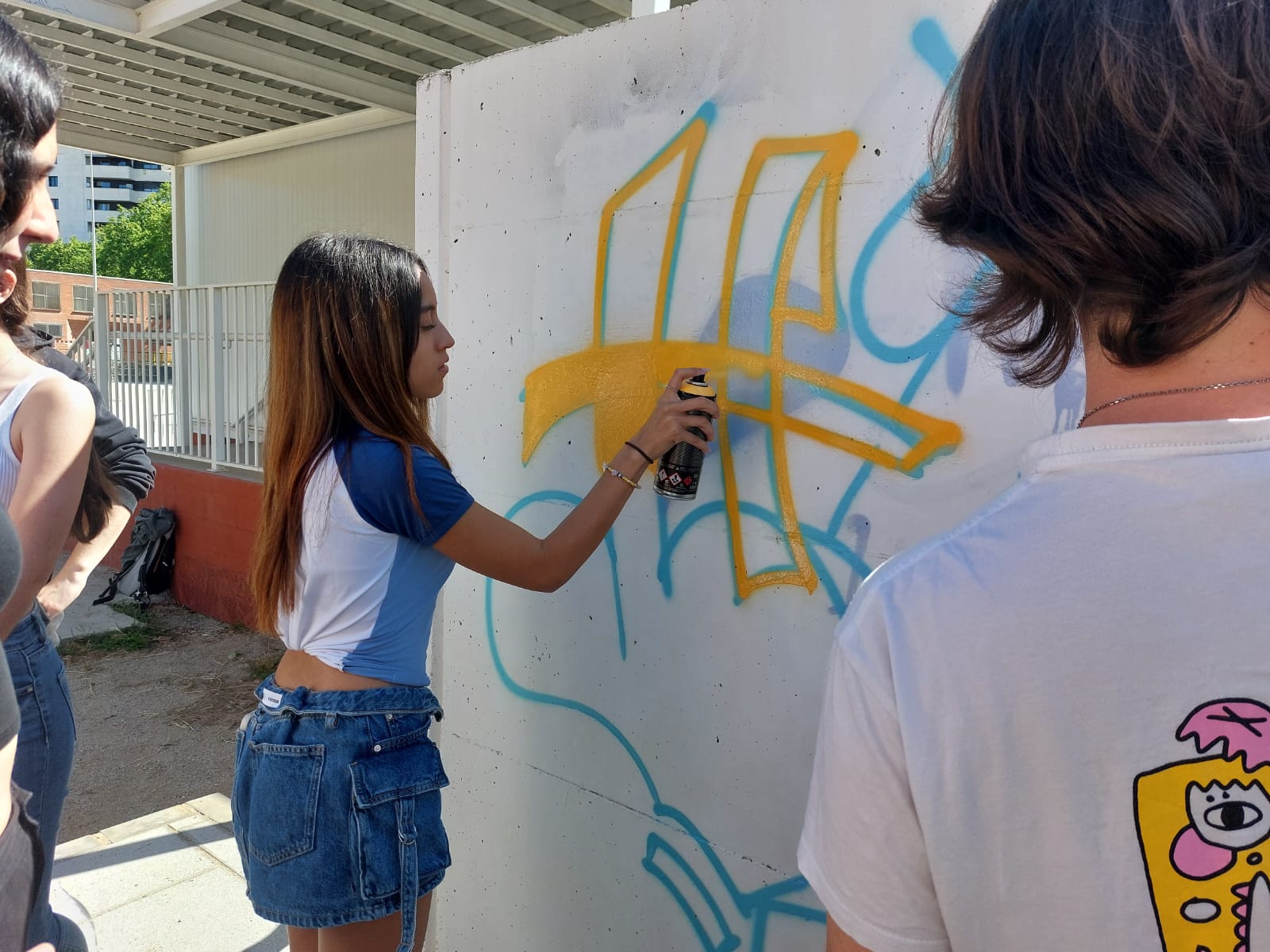 L’alumnat de l’optativa de Llenguatges artístics de B1 van realitzar un taller de grafiti amb l’artista @edmvndogarcia. Van poder aprendre algunes tècniques i posar-les en pràctica en una obra que podeu gaudir al costat dels mòduls. Aquest taller està destinat a preparar als futurs artistes que ens faran un mural al nostre gimnàs en les setmanes vinents.