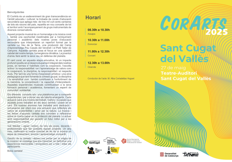 El 27 de maig, el nostre alumnat de 2n d’ESO va participar en la cantata La Veu de la Terra que es va dur a terme al teatre-auditori de Sant Cugat del Vallès, una experiència musical i educativa compartida amb altres centres del Vallès Occidental i acompanyats per una orquestra de músics del Conservatori de la nostra ciutat.