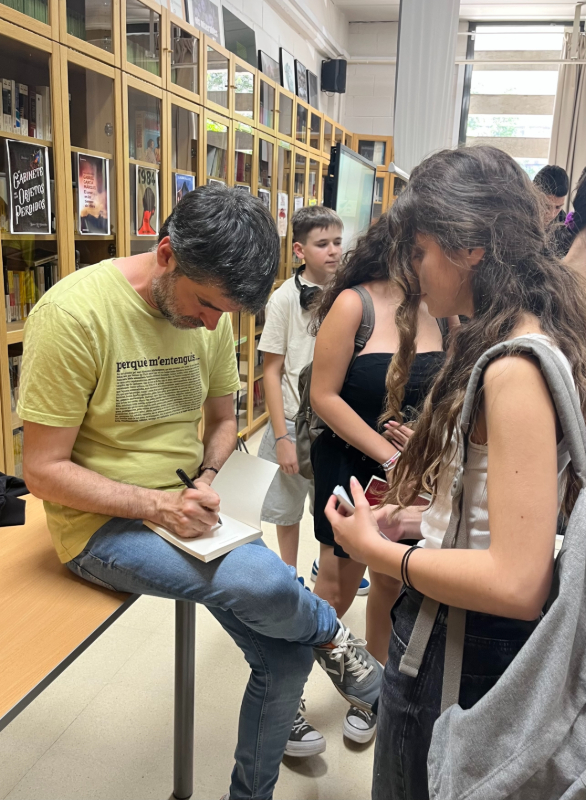 L’alumnat s’ha animat a fer-li preguntes ben interessants i ens ha signat alguns exemplars de la novel·la.