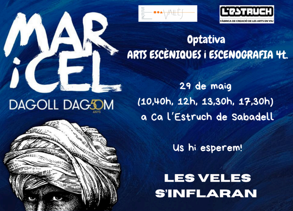 Demà dijous dia 29 de maig, l’alumnat de 4t d’ESO que ha cursat la matèria d’Arts Escèniques farà la representació d’una versió abreujada de l’obra Mar i Cel, de Dagoll Dagom, al centre cultural l’Estruch.