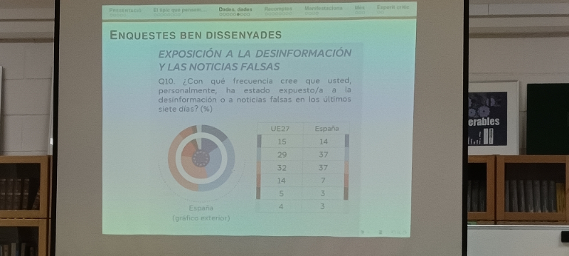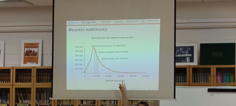 Dimarts 14 d’abril, l’alumnat de primer de batxillerat social i científic va poder aprendre Estadística del dia a dia amb la professora Maribel Ortego, de la UPC, a la biblioteca de l’institut.